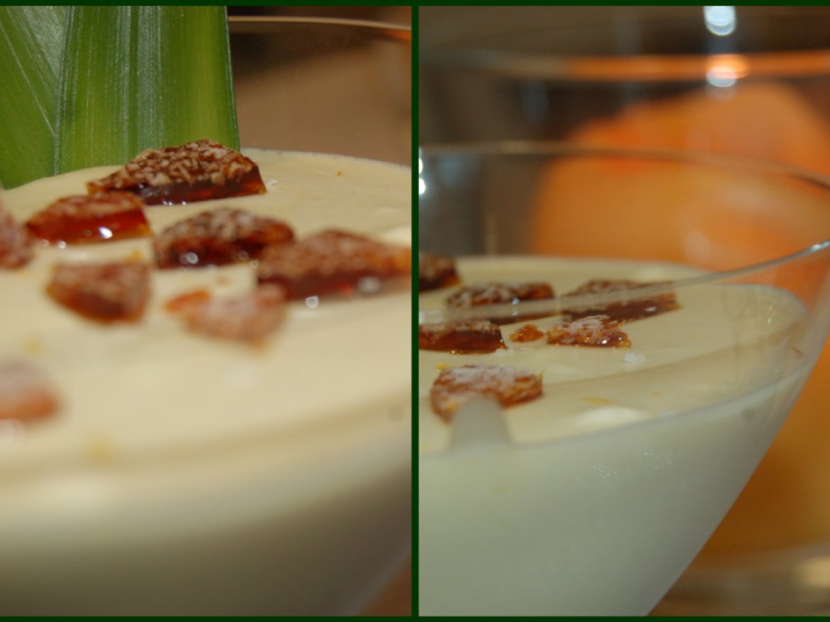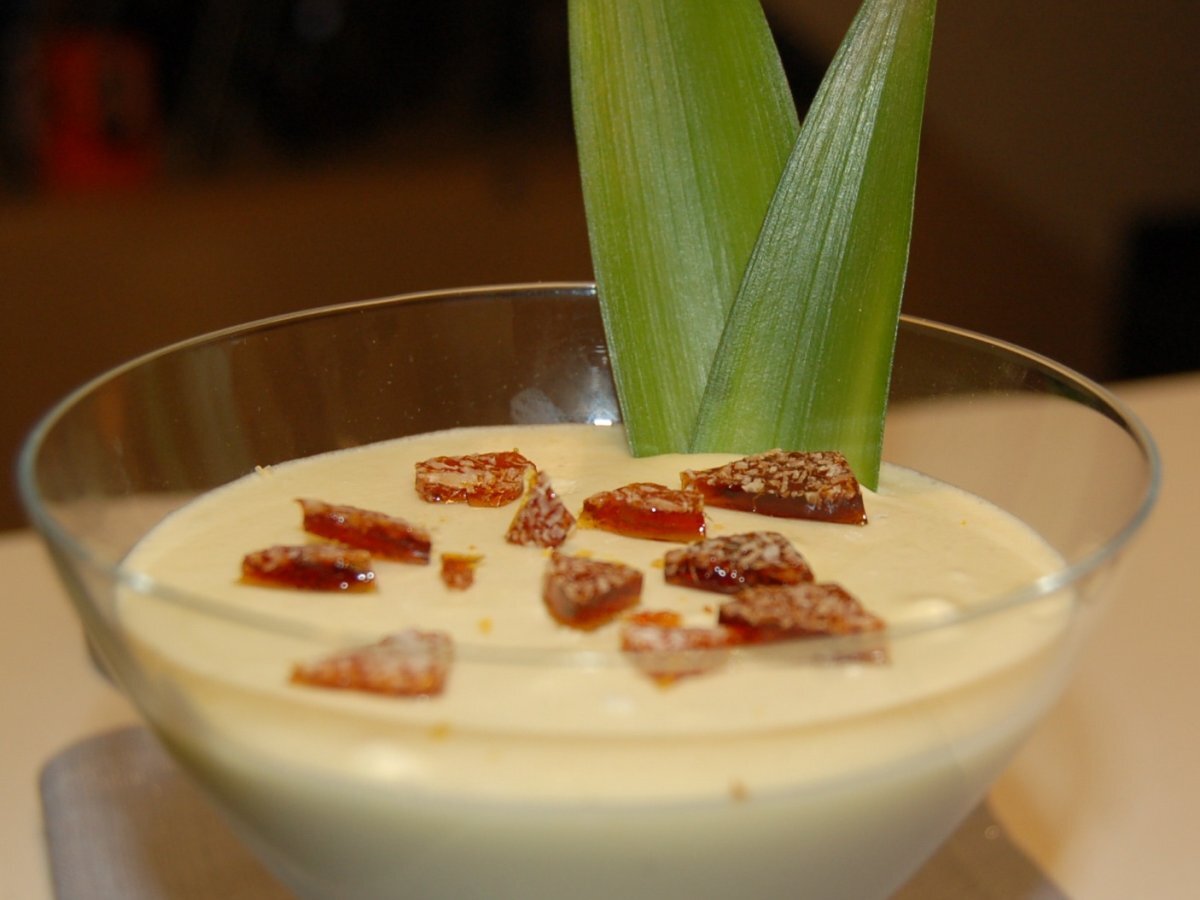 Mousse de piña colada AnteriorSiguiente PostreMedio30 min Enviar esta receta a un amigo Imprimir esta página Preguntar al autor Publicar la foto de esta receta Ingredientes 4 1 piña mediana 400 cc de leche de coco 100 g de azúcar 4 hojas de gelatina hidratadas 4 cucharadas de ron blanco 200 cc de nata montada xips de coco: 100 g de azúcar + coco rallado