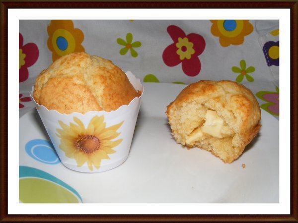 Muffins aromatizados con vainilla y rellenos de chocolate blanco