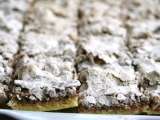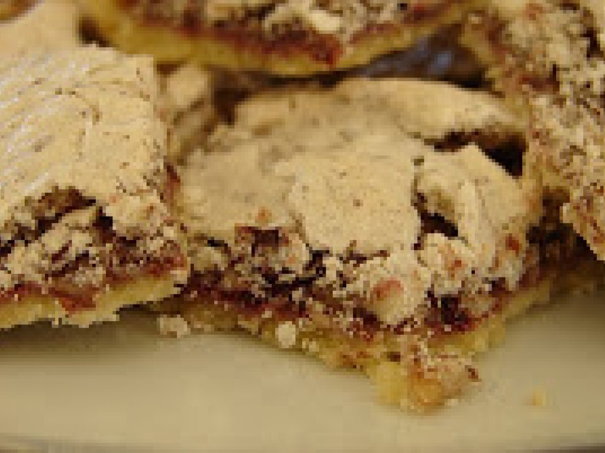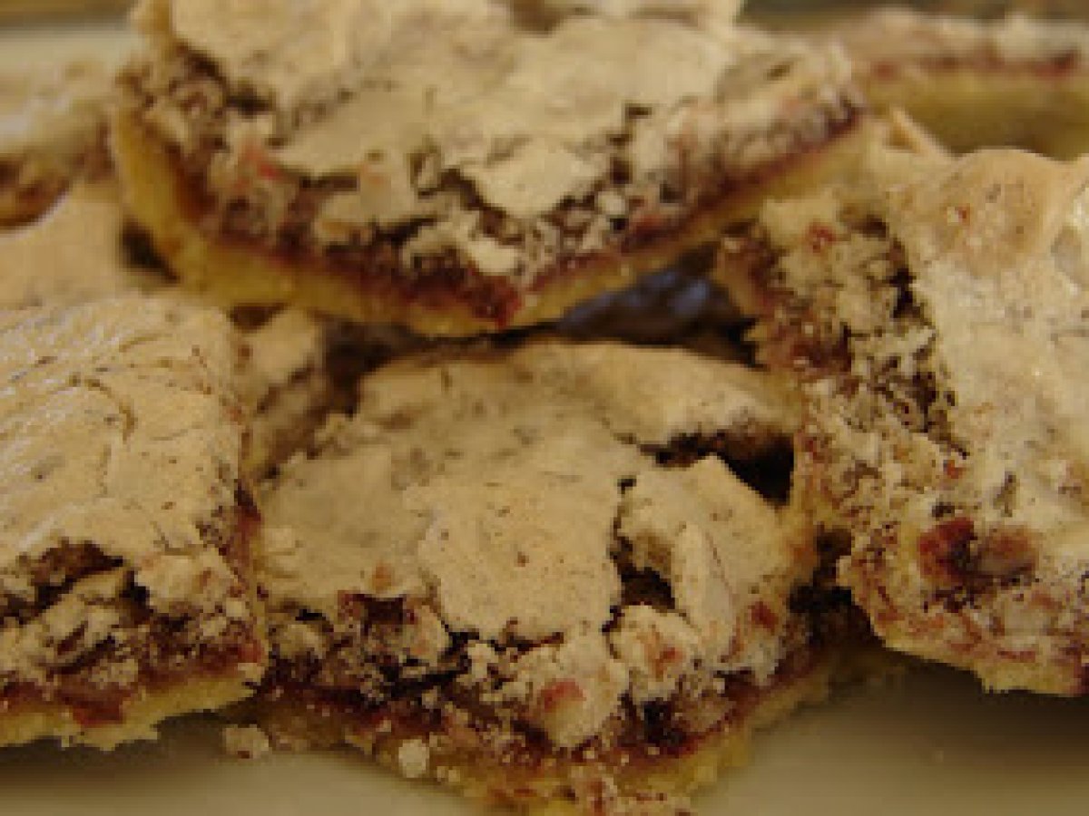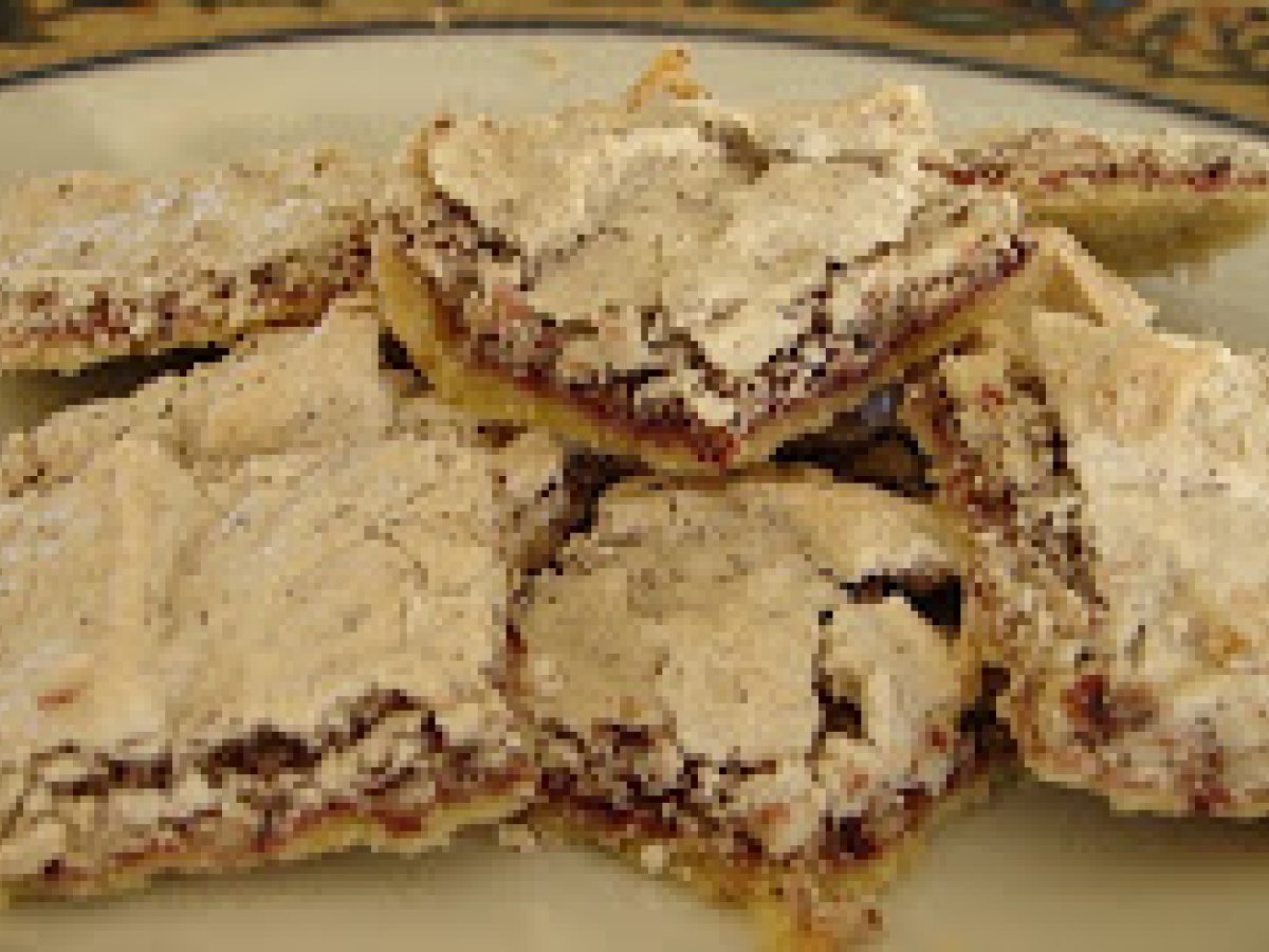 Untar la superficie de la masa cocida con dulce de frambuesas. Encima, esparcir el merengue cubriendo toda la superficie. Cocinar en el horno a 160°C durante 25min. Al cumplirse este tiempo, apagar el horno y dejar la preparación dentro hasta que se enfríe. Cortar en cuadraditos o palitos.