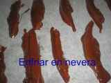 Batir a nieve las 3 claras e incorporar los 125g. de azúcar. Batir hasta obtener un merengue firme. Incorporar al merengue con batidor de alambre, los frutos secos picados y el chocolate rallado. - Armado: