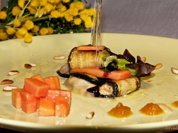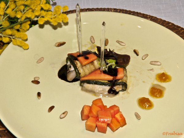 Papaya sobre láminas de calabacín relleno de queso brie y pera. vota ahora AnteriorSiguiente PostreFácil40 min Enviar esta receta a un amigo Imprimir esta página Preguntar al autor Publicar la foto de esta receta Ingredientes 2 Queso brie Pera conferencia Papaya Piñones Lechuga roble Salsa de vinagre de Módena
