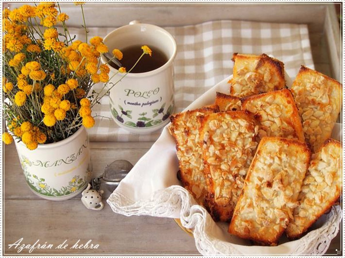 Pastas de pan y almendras PostreFácil30 min Enviar esta receta a un amigo Imprimir esta página Preguntar al autor Publicar la foto de esta receta Rapida y muy fácil Ingredientes 4 Rebanadas de pan de molde sin corteza Leche condensada (1 cucharada sopera por rebanada de pan) Almendras crudas picadas (25 gr. por rebanada de pan) Azúcar glas para decorar