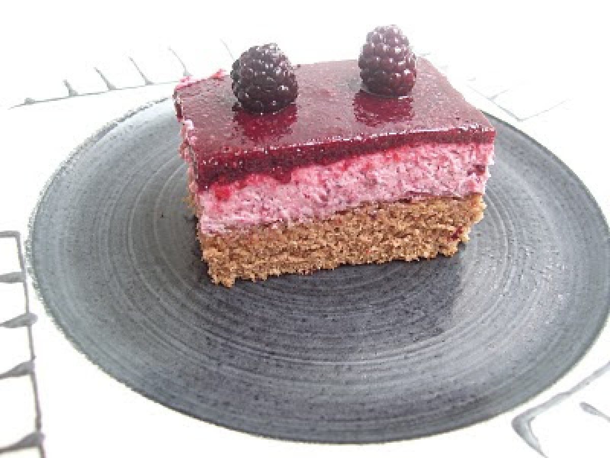 Pastel de moras PostreMedio40 min439 Kcal Enviar esta receta a un amigo Imprimir esta página Preguntar al autor Publicar la foto de esta receta Ingredientes 4 Para el bizcocho: 3 huevos 100 g de azúcar 80 g de harina 20 g de cacao en polvo Para la mousse: 400 ml de nata 200 g de moras 70 g de azúcar 4 hojas de gelatina Para la cobertura: 200 g de moras 30 g de azúcar 2 hojas de gelatina