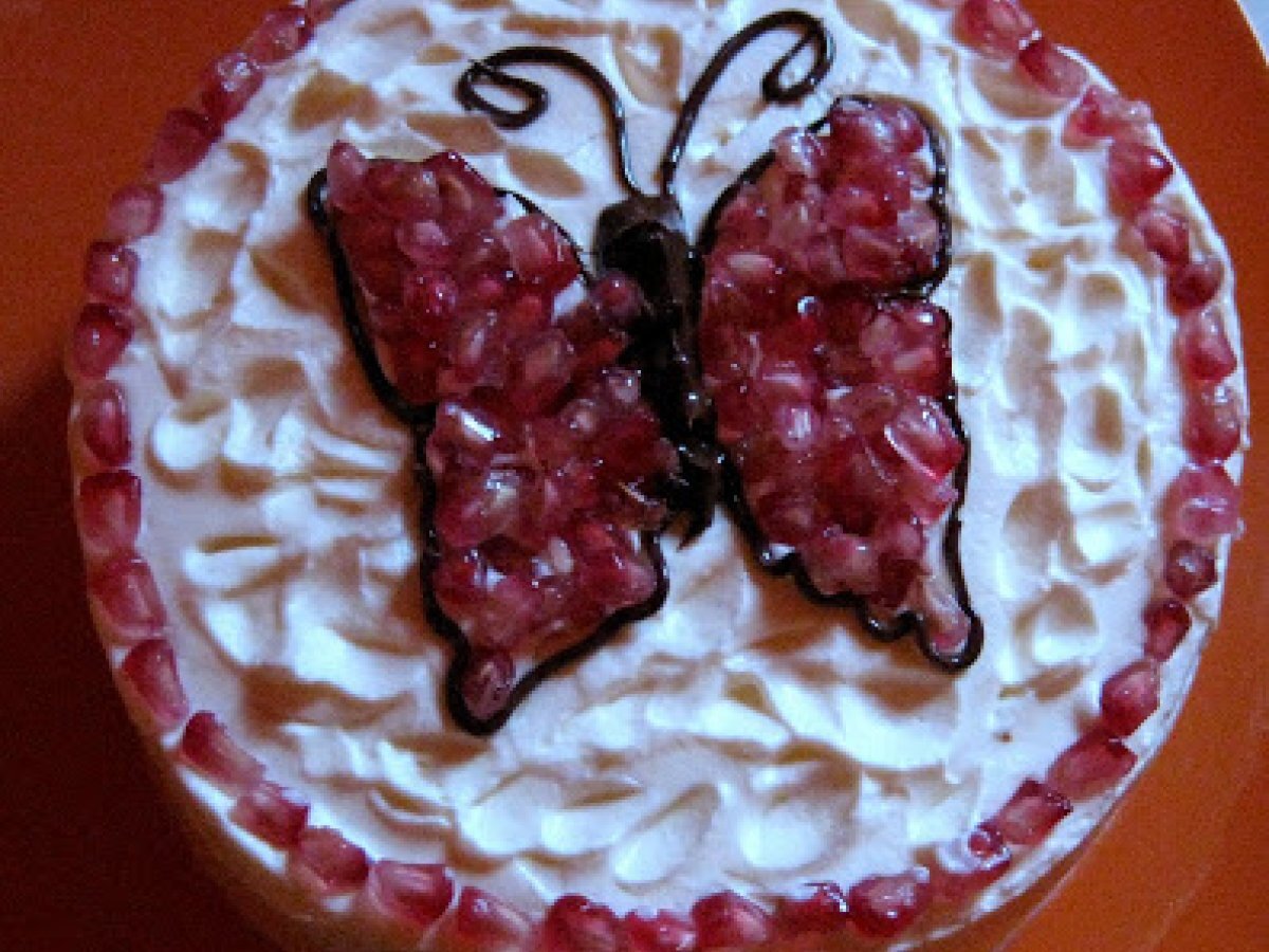 Pastel de nata y granada AnteriorSiguiente PostreFácil1 hora Enviar esta receta a un amigo Imprimir esta página Preguntar al autor Publicar la foto de esta receta Ingredientes 2 Para el bizcocho: 2 huevos 1 yogurt de fresa 1/2 medida de yogurt de aceite 1 y 1/2 medidas de yogurt de azúcar 2 medidas de yogurt de harina de repostería Un poco más de la mitad de un sobre de levadura Una pizca de sal Mantequilla para engrasar el molde Para bañarlo: 1 vaso de leche entera azucarada. Para la cobertura: 500 g de nata para montar (35%M.G.) 80 g de azúcar glasé 2 cucharadas soperas de queso Philadelphia Para decorar: Lápiz pastelero de chocolate 1 granada
