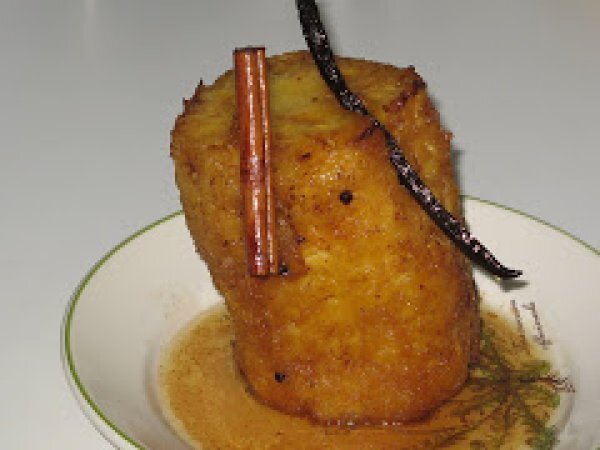 Piña al horno PostreFácil50 min2171 Kcal Enviar esta receta a un amigo Imprimir esta página Preguntar al autor Publicar la foto de esta receta Ingredientes 1 1 piña 1 palo de canela 1 vaina de vainilla 15 granos de pimienta negra en grano 100 grs. de mantequilla 150 grs. de azúcar moreno 1 vasito de ron Costo estimado: 5.66Euros€ (5.66€/porción)