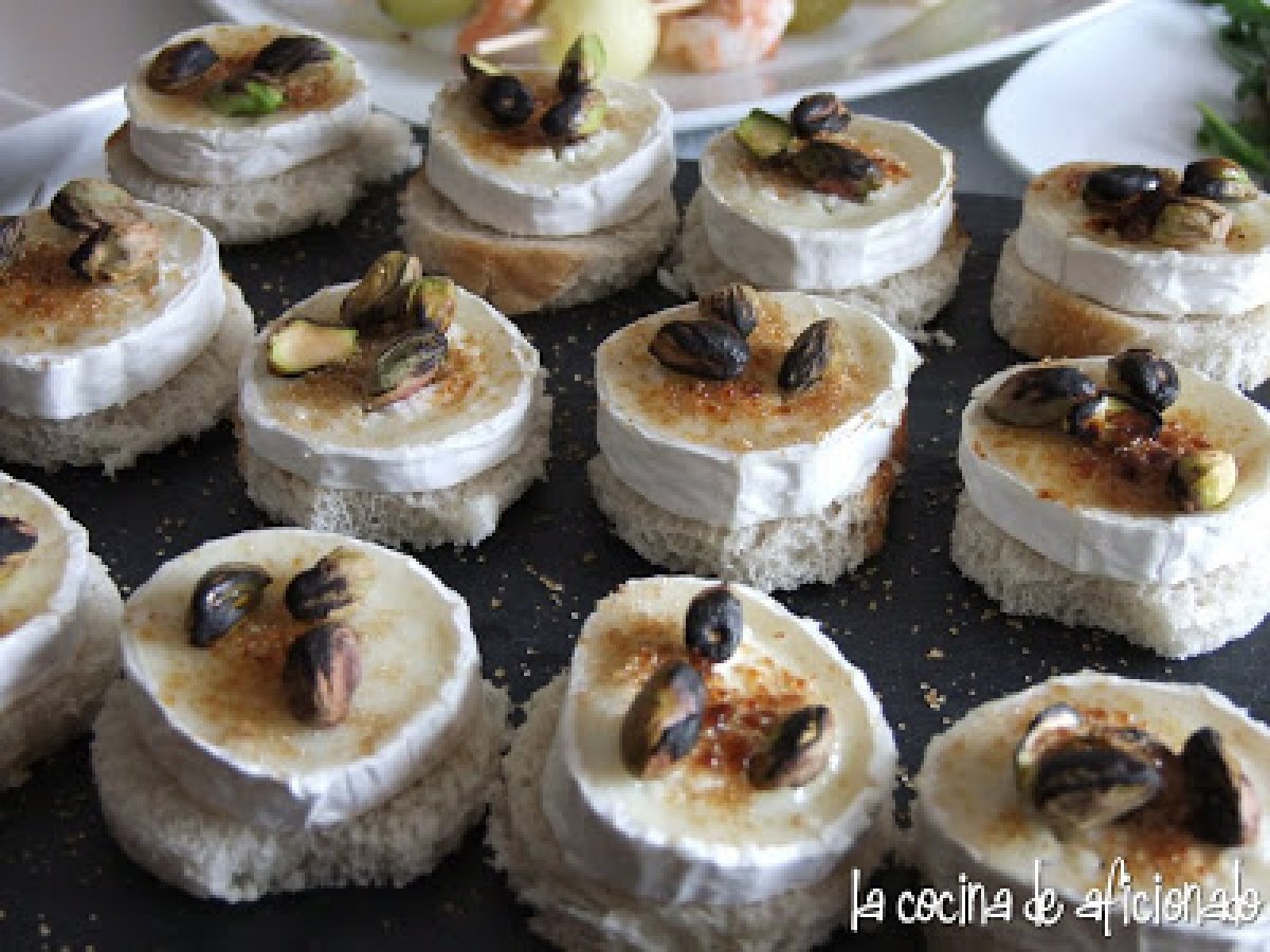 Queso de cabra y pistachos caramelizados AnteriorSiguiente PostreFácil1 hora Enviar esta receta a un amigo Imprimir esta página Preguntar al autor Publicar la foto de esta receta Ingredientes 8 Un rulo pequeño de queso de cabra 3 o 4 pistachos por aperitivo Azúcar moreno 3 rebanadas de pan de molde