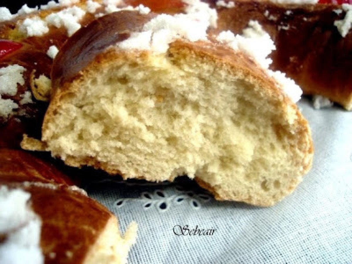 Roscon de reyes vanesita82 (panificadora y horno) AnteriorSiguiente PostreFácil35 min Enviar esta receta a un amigo Imprimir esta página Preguntar al autor Publicar la foto de esta receta Ingredientes 2 200 ml de leche 100 g de azúcar 1 huevo 4 cucharadas soperas de anís o unas gotas de la esencia (puse el licor) 500 g de harina de fuerza 1 sobre de levadura seca de panadería (puse 7 g) 1 cucharada de café rasa de sal 100 g de mantequilla o margarina (puse mantequilla) COSA MIA: 1 cucharada sopera de miel (para que se mantenga tierno más tiempo) Decoración: 1 huevo batido para pintar el roscón Frutas confitadas Azúcar humedecida con agua y anís