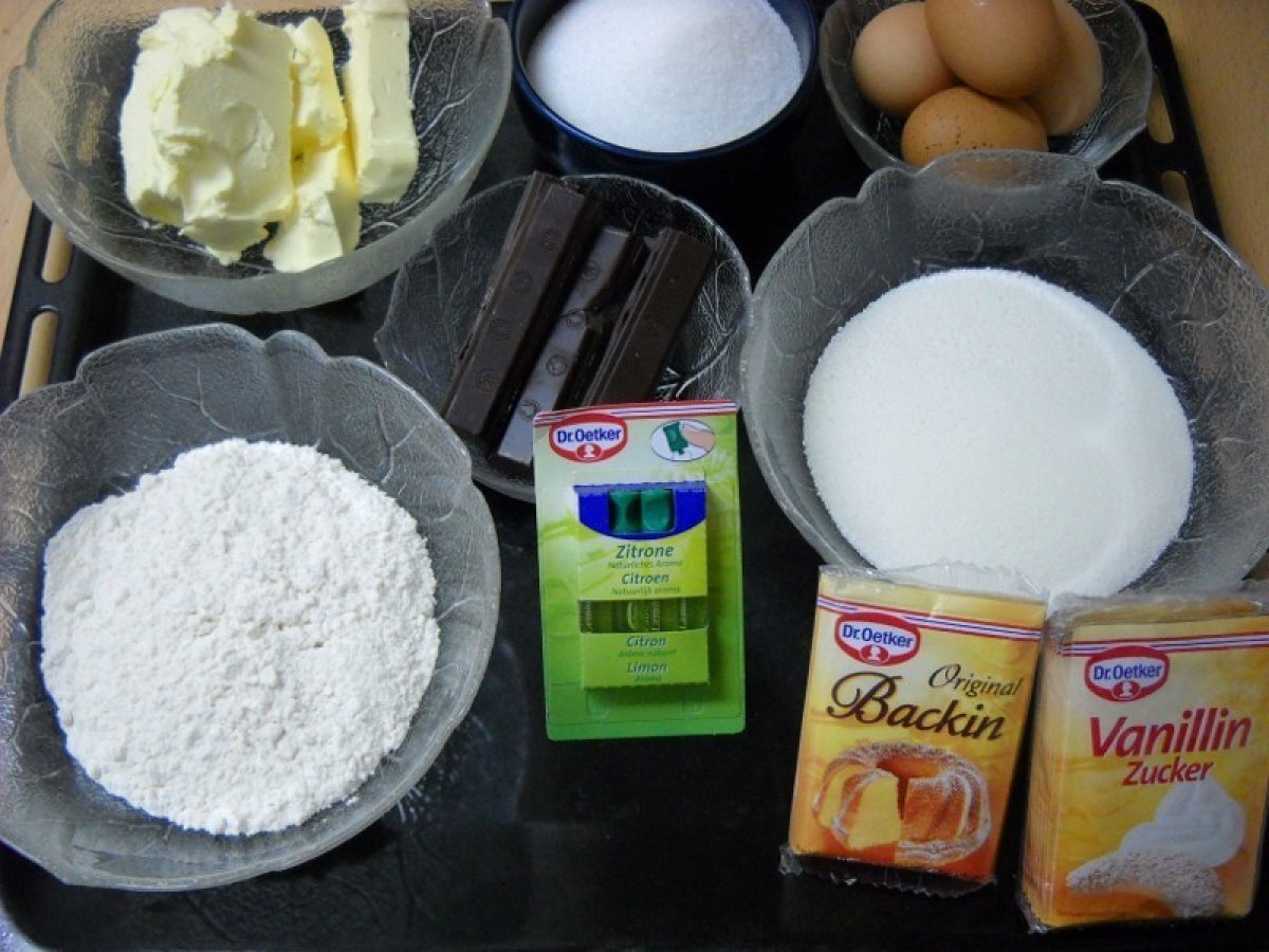 Sandkuchen "pastel de arena" AnteriorSiguiente PostreMedio1 h 50 m1622 Kcal Enviar esta receta a un amigo Imprimir esta página Preguntar al autor Publicar la foto de esta receta Ingredientes 8 * 250 gr. mantequilla/margarina en pomada * 225 azucar * 1 sobre azucar-vainilla de Dr. Oetker * 1 pizca de sal * unas gotas de aroma de limón de Dr. Oetker * 4 huevos medianos * 125 gr de harina de trigo * 125 gr maizena * 1 cucharadita de levadura en polvo Original Backin de Dr. Oetker. Cobertura: * 150 gr de chocolate de reposteria * 1 cuchara sopera de aceite. Costo estimado: 6.12Euros€ (0.76€/porción)