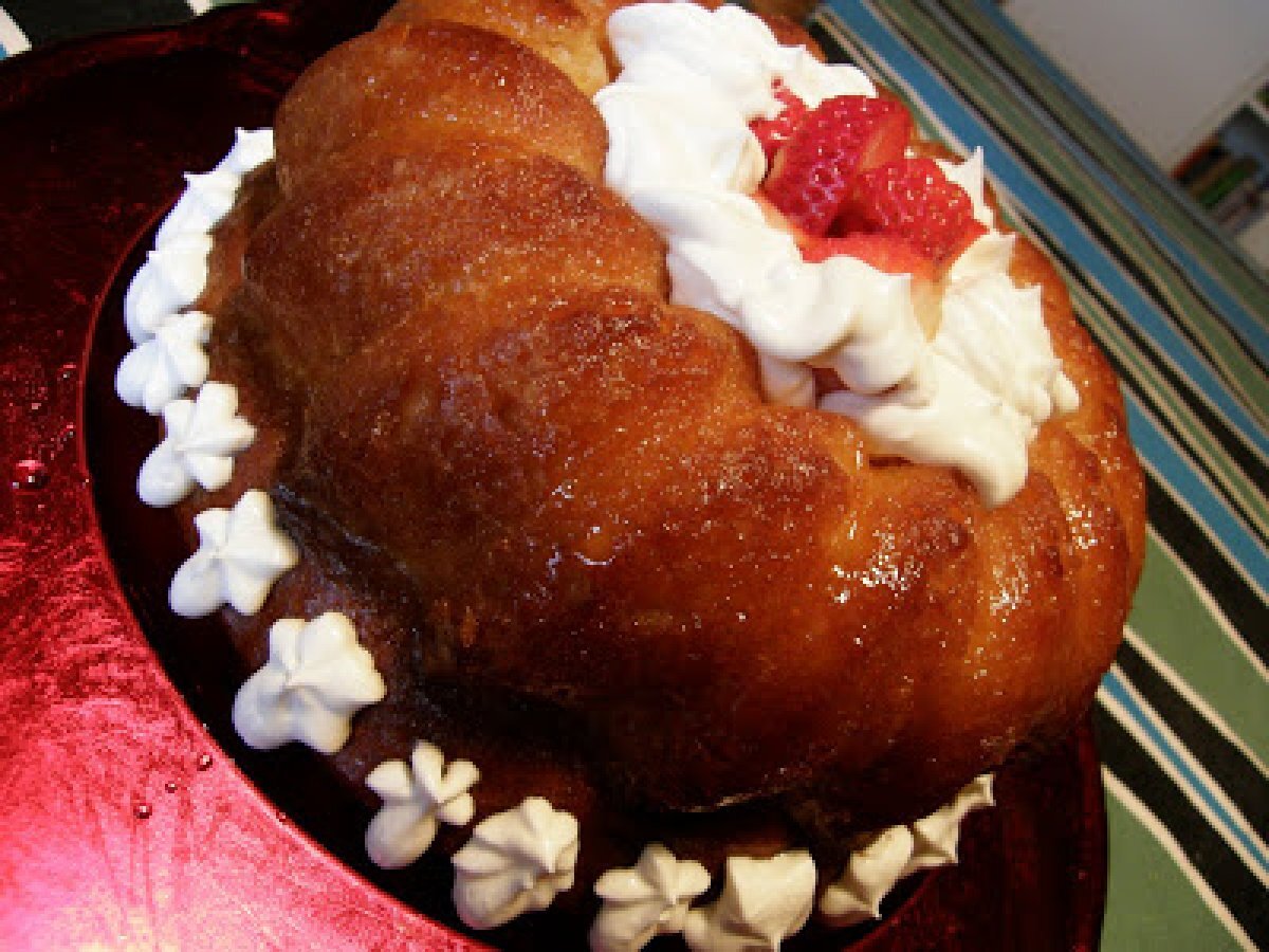 Savarín de coco con fresas y nata AnteriorSiguiente PostreMedio1 hora496 Kcal Enviar esta receta a un amigo Imprimir esta página Preguntar al autor Publicar la foto de esta receta Ingredientes 8 20 g de levadura prensada 350 g de harina de trigo 100 ml de leche templada 4 huevos 40 g de azúcar esencia de vainilla y sal 100 g de mantequilla o margarina Fresas y nata montada. Para el almíbar necesitaremos: medio l de agua 200 ml de ron de coco 50 ml de vino blanco 200 g de azúcar Costo estimado: 5.4Euros€ (0.68€/porción)