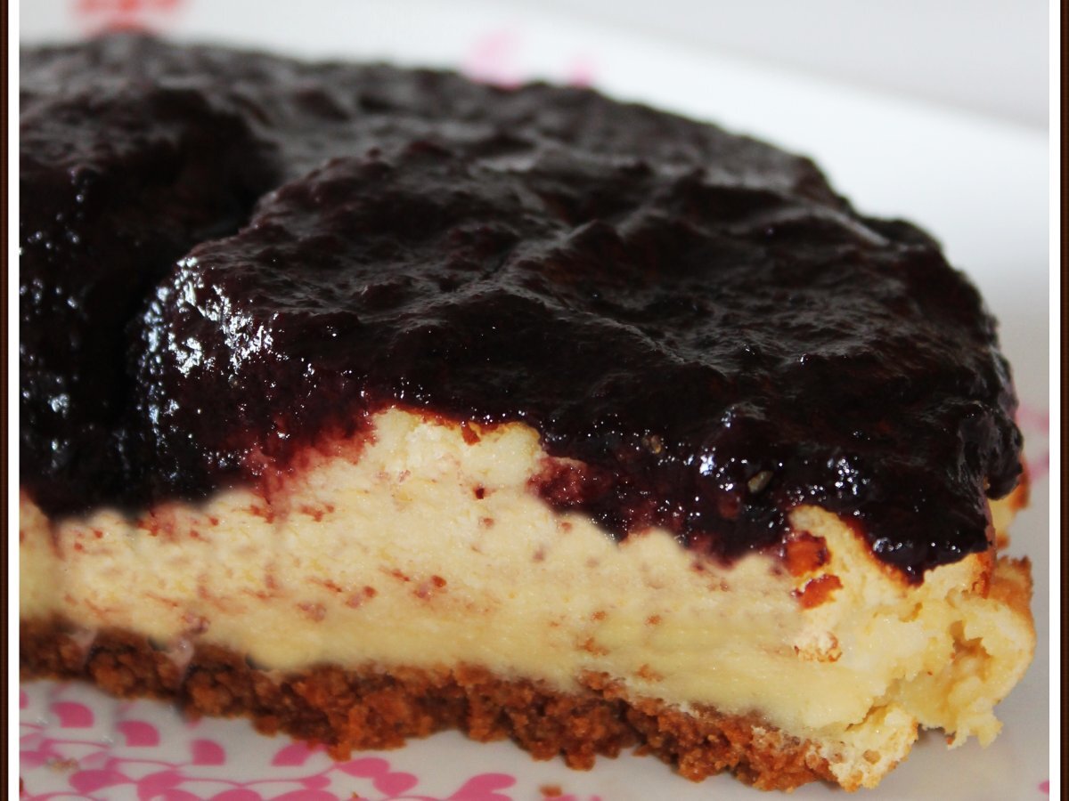 PASTEL AMERICANO DE QUESO CON MERMELADA DE MORAS Y BASE DE GALLETAS