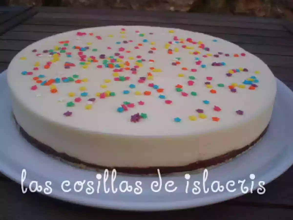 Tarta de chocolate blanco en tmx PostreFácil40 min735 Kcal Enviar esta receta a un amigo Imprimir esta página Preguntar al autor Publicar la foto de esta receta Ingredientes 8 200 g de chocolate blanco 500 g de nata liquida 250 g de leche 130 g de azucar 250 g de queso filadelfia 2 sobres de cuajada royal Base de galleta: 225 g. de galletas de tipo Digestive 45g. de chocolate negro 60 g. de mantequilla Costo estimado: 9.52Euros€ (1.19€/porción)
