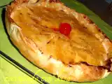 Tarta de crema pastelera y frutas PostreFácil55 min592 Kcal Enviar esta receta a un amigo Imprimir esta página Preguntar al autor Publicar la foto de esta receta Ingredientes 4 1 Plancha de hojaldre (en este caso de La Cocinera) 4 yemas de huevo 375 ml de leche 125 gr de azúcar 125 ml de nata 50 gr de Maicena Ralladura de limón (opcional) Frutas al gusto Gelatina neutra Agua Costo estimado: 3.44Euros€ (0.86€/porción)