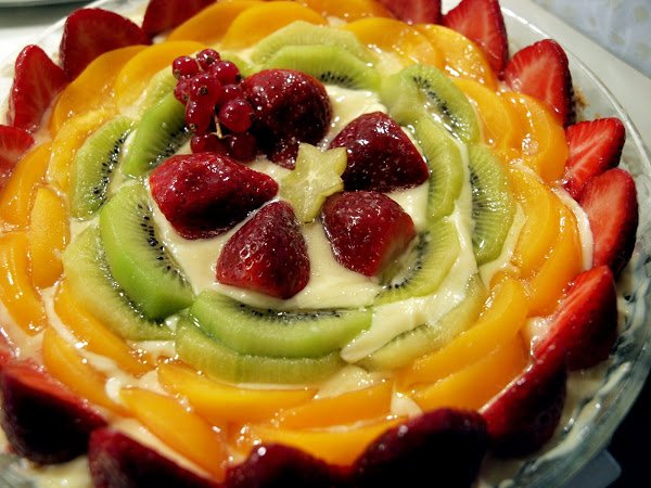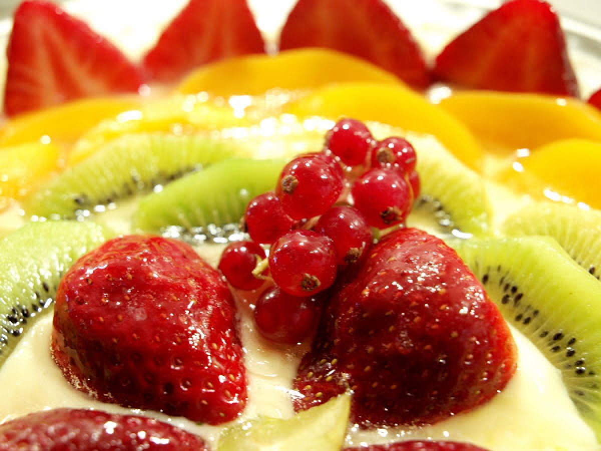 Tarta de frutas con crema de vainilla AnteriorSiguiente PostreFácil1 h 5 m480 Kcal Enviar esta receta a un amigo Imprimir esta página Preguntar al autor Publicar la foto de esta receta Ingredientes 4 1 paquete de galletas maría 75 g de mantequilla temperatura ambiente Medio l de leche entera 4 yemas 120 g de azúcar 50 g de maicena 50 g de mantequilla sin sal 1 vaina de vainilla La cáscara de medio limón Costo estimado: 1.73Euros€ (0.43€/porción)