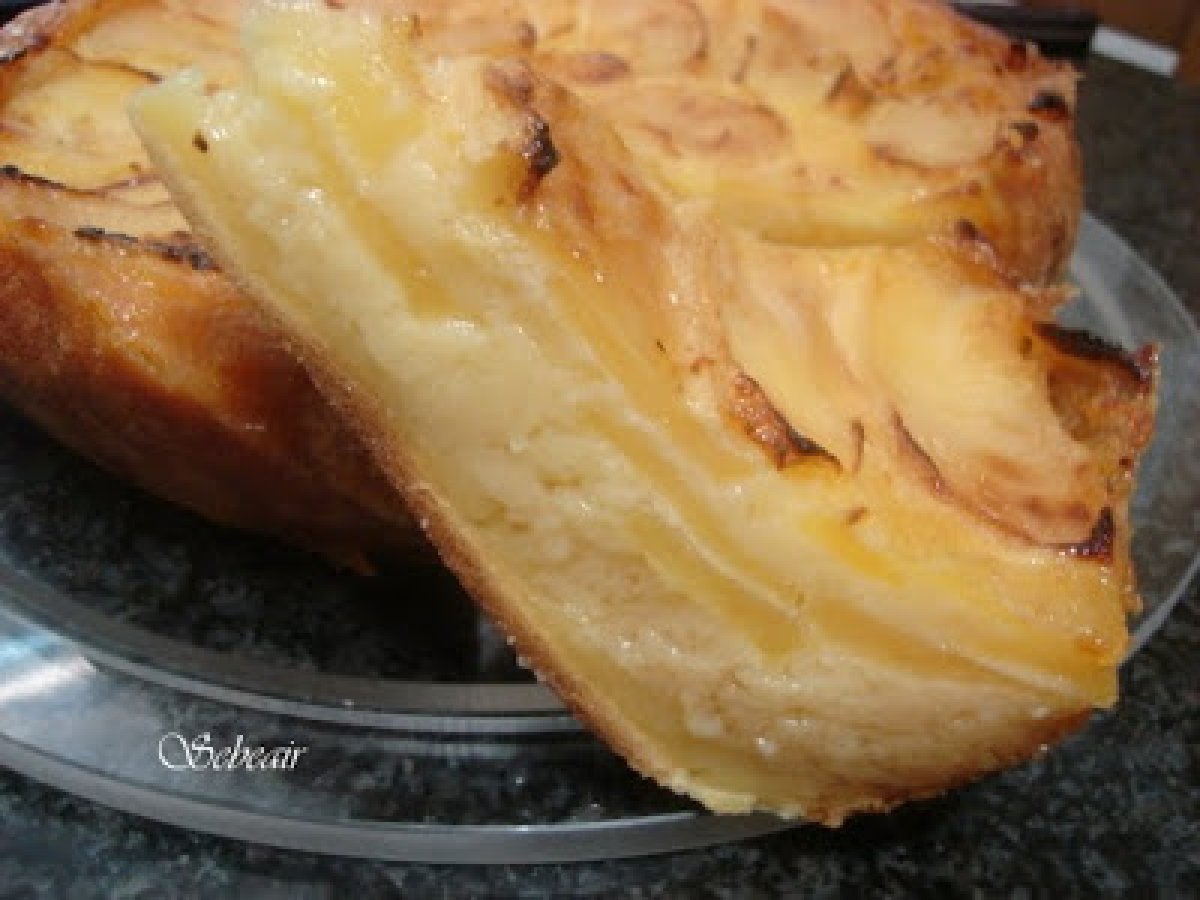 Tarta de manzana sin base (fussioncook y thermomix) AnteriorSiguiente PostreFácil50 min Enviar esta receta a un amigo Imprimir esta página Preguntar al autor Publicar la foto de esta receta Ingredientes 3 3 huevos 500 ml de leche 1 sobre de flanín 120 g de azúcar 100 g de harina 3 manzanas peladas y cortadas en gajos 1 sobre de levadura mermelada para pintar la tarta