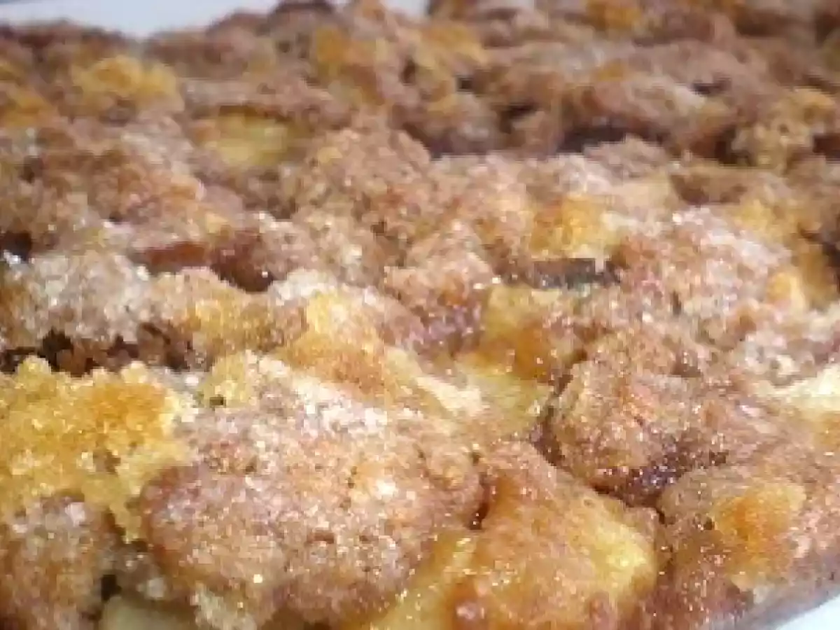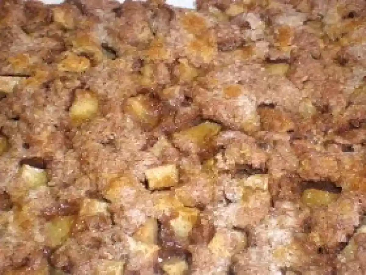 Tarta de manzana y nueces crujiente AnteriorSiguiente PostreFácil45 min878 Kcal Enviar esta receta a un amigo Imprimir esta página Preguntar al autor Publicar la foto de esta receta Ingredientes 3 125 g de harina de reposteria 1 c.cafe de levadura quimica 1 pizca de sal 2 c.cafe de canela en polvo 35 g de mantequilla blanda 3 c.sopera de mantequilla de cacahuete 110 g de azucar moreno 100 g de azucar blanco 1 huevo 3 manzanas cortadas en daditos 60 g de nueces troceadas 2 c.sopera de azucar blanco + 2 c.cafe de canela Costo estimado: 3.85Euros€ (1.28€/porción)