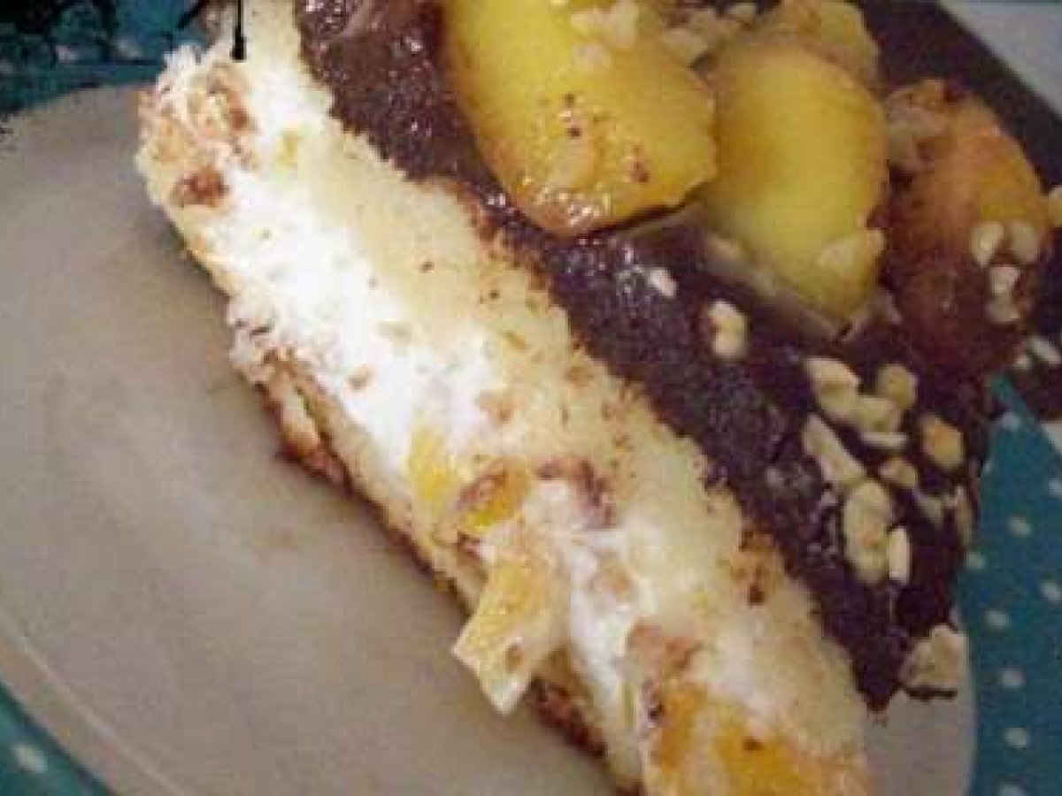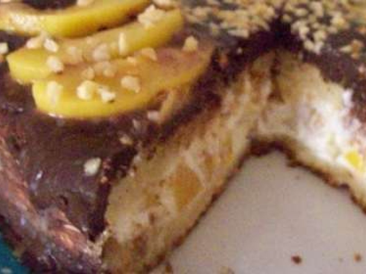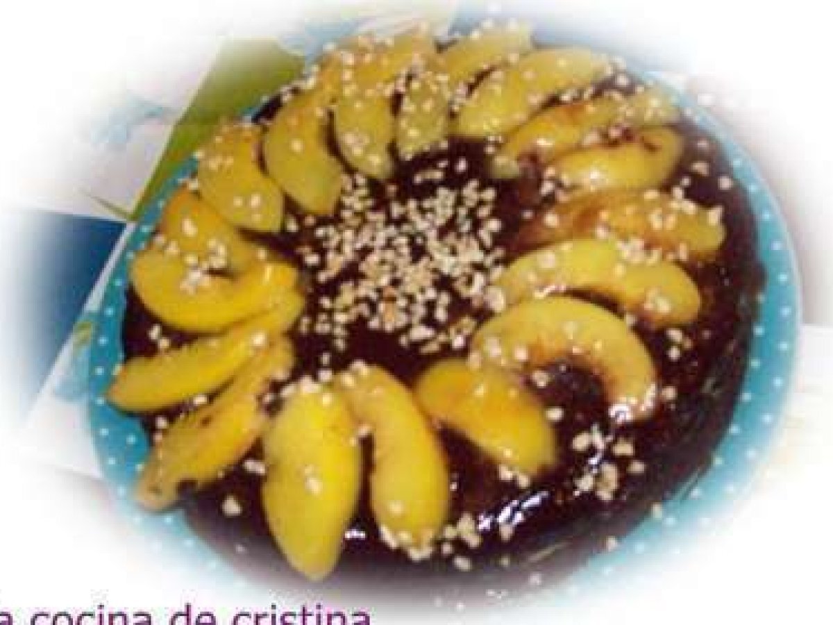 Tarta de melocoton y almendras AnteriorSiguiente PostreMedio1 h 40 m Enviar esta receta a un amigo Imprimir esta página Preguntar al autor Publicar la foto de esta receta Ingredientes 4 INGREDIENTES PARA EL BIZCOCHO: . 1 yogurth natural . 1 vaso de yogurth de aceite de girasol . 2 vasos de yogurth de azucar . 2 vasos de yogurth de harina . 3 huevos . 1 sobre de levadura . almendras picadas INGREDIENTES LICOR PARA EMBORRACHAR EL BIZCOCHO . medio vaso de agua . medio vaso de ron . medio vaso de azucar INGREDIENTES PARA EL RELLENO : . 1 brick de nata para montar de 200 ml . 3 mitades grandes de melocoton en almibar . 4 cucharadas de azucar . 2 cucharadas de queso de untar . 1 hoja de gelatina . almendras picadas INGREDIENTES PARA LA COBERTURA : . chocolate fondant 200 g . 3 mitades de melocoton en almibar . almendras tostadas . brick de nata para montar de 200 ml
