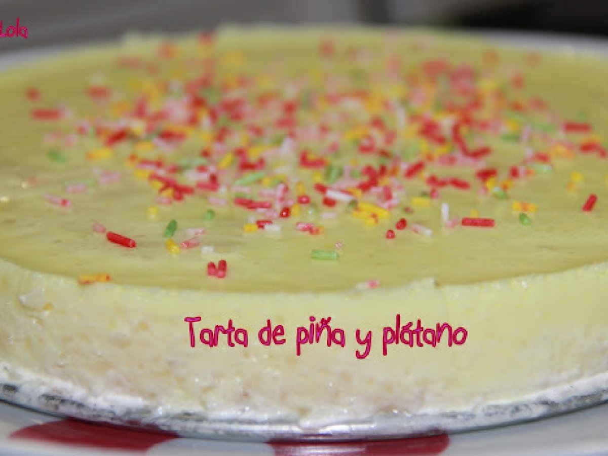 Tarta de piña y platano PostreFácil22 min Enviar esta receta a un amigo Imprimir esta página Preguntar al autor Publicar la foto de esta receta Muy fácil y rica Ingredientes 4 1 bote mediano de piña en almibar. 1 sobre de Gelatina de piña o limón 1 brik de nata líquida de 200 ml 1 platano.