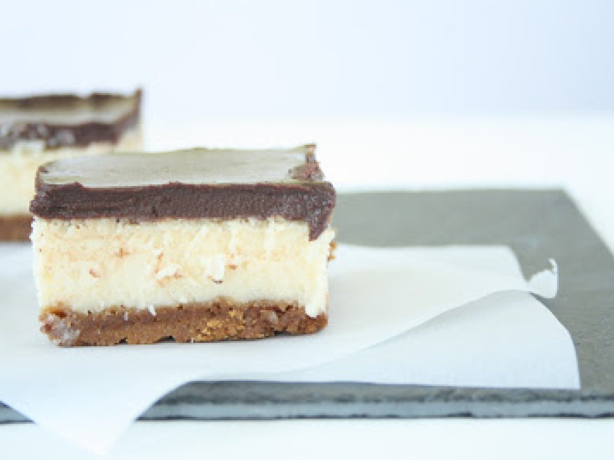Tarta de queso y chocolate AnteriorSiguiente PostreFácil55 min1916 Kcal Enviar esta receta a un amigo Imprimir esta página Preguntar al autor Publicar la foto de esta receta Se pueden cortar en barritas Ingredientes 3 300 g de galletas 50 g de azúcar moreno 75 g de mantequilla derretida 300 g de queso crema 200 g de azúcar blanco 3 huevos 30 g de harina 200 ml de nata 1/2 cucharadita de esencia de vainilla 200 ml de nata 50 g de mantequilla 200 g de chocolate negro 100 g de azúcar glas Costo estimado: 9.45Euros€ (3.15€/porción)