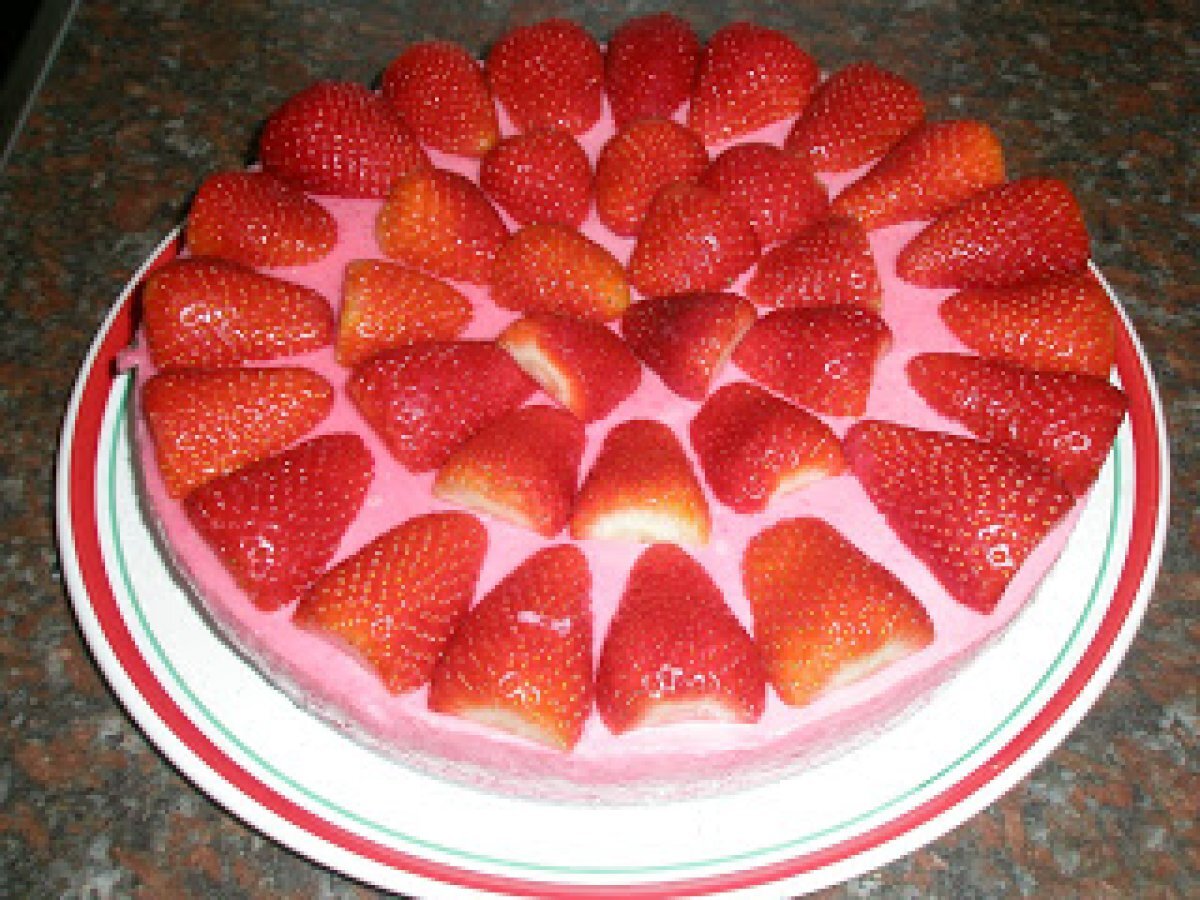 Tarta de queso y fresas PostreMedio50 min160 Kcal Enviar esta receta a un amigo Imprimir esta página Preguntar al autor Publicar la foto de esta receta Ingredientes 8 2 tarrinas de queso philadelphia o similar. 2 yogurt de fresa de los que llevan trocitos. 100 gr de azucar. 4 cucharadas soperas rasas de leche condensada. 1 sobre de gelatina de fresa. 1 sobre de gelatina neutra. 300 gr de fresas para adornar. El zumo colado de dos limones. Una base de bizcocho. Costo estimado: 6.01Euros€ (0.75€/porción)