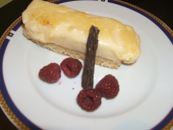 Tarta mousse de crema catalana. AnteriorSiguiente PostreFácil50 min Enviar esta receta a un amigo Imprimir esta página Preguntar al autor Publicar la foto de esta receta Ingredientes 4 Para la mousse de crema catalana: 1 y 1/2 l de leche 300 g de azúcar 45 g de fécula de maíz 12 yemas de huevo. La piel de un limón (sin nada de blanco). 1 corteza de canela. 6 hojas de gelatina. Azúcar para espolvorear y quemar. Para la base (las cantidades de la receta para el brazo de gitano son las que aparecen entre paréntesis): 2 (3) huevos. 1 (1/2 sobre) cucharada de levadura. 50 (65) g de harina. 50 (65)g de azúcar. Para el almíbar: 100 ml de agua. 25 g de azúcar. 3 cucharadas de ron miel (se puede poner cualquier licor) Para acompañar: Frambuesas. Ramas de chocolate negro.