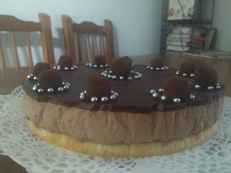 Tarta mousse de nutella AnteriorSiguiente PostreFácil40 min1234 Kcal Enviar esta receta a un amigo Imprimir esta página Preguntar al autor Publicar la foto de esta receta Ingredientes 2 Para el bizcocho: 2 huevos 50 g de harina 50 g de azúcar Para la Mousse: 400 ml. de nata 2 claras de huevo 200 g de Nutella 1/2 vasito de leche 3 hojas de gelatina Cobertura: 75 g de nata 75 g de chocolate fondant 30 g de mantequilla Crocanti de almendra Costo estimado: 5.37Euros€ (2.68€/porción)