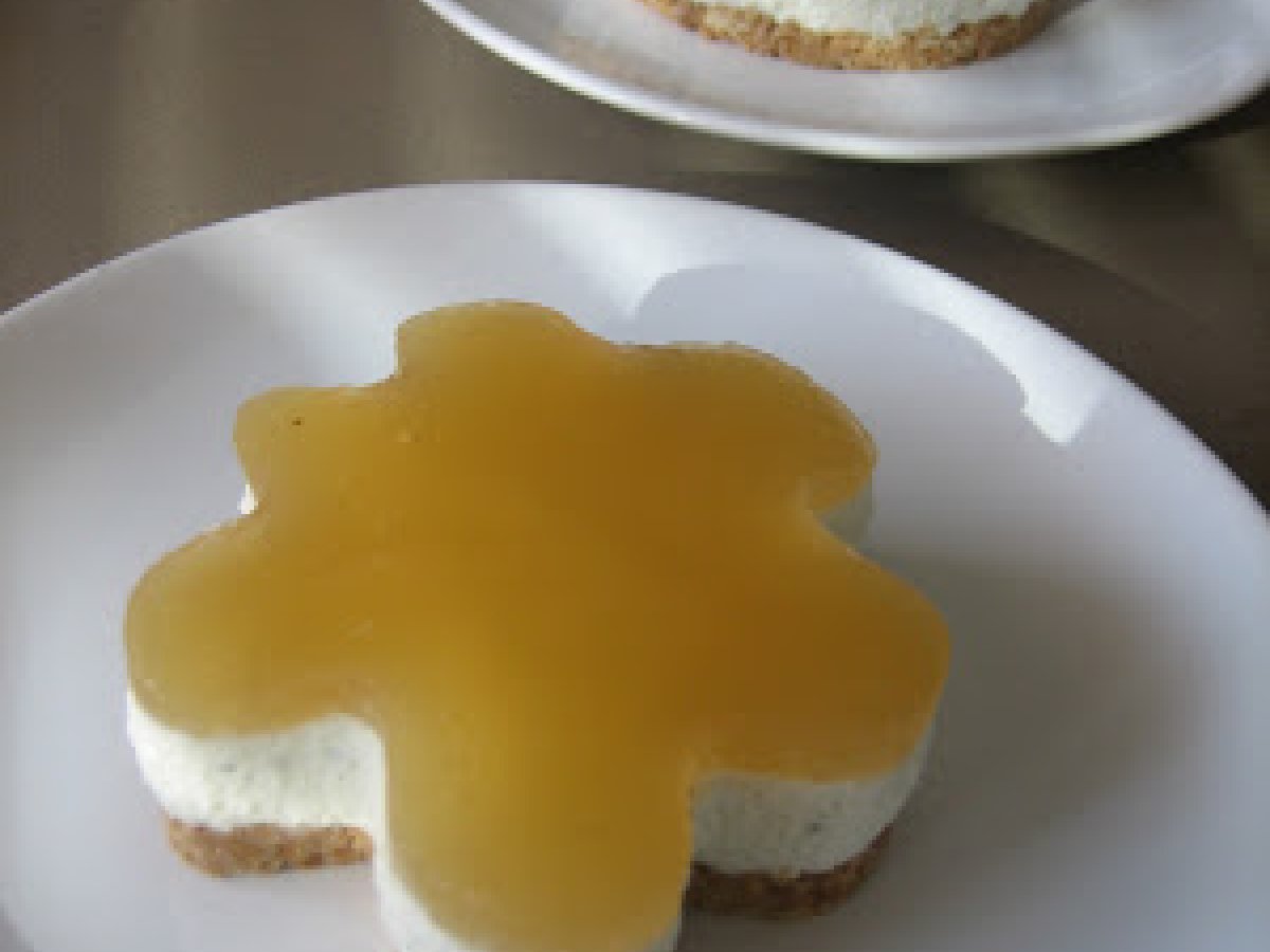 Tarta mousse de queso cabrales y dulce de manzana AnteriorSiguiente PostreFácil40 min414 Kcal Enviar esta receta a un amigo Imprimir esta página Preguntar al autor Publicar la foto de esta receta Ingredientes 6 Para la base: medio rulo de galletas maría 50 gr de mantequilla Para la crema de queso: 200 gr de queso de untar 25 gr de queso cabrales 8 cucharadas soperas de azúcar 250 ml de nata para montar 3 hojas de gelatina neutra 50 ml de agua Para la cobertura: dulce de manzana 2 hojas de gelatina 50 ml de agua Costo estimado: 5.05Euros€ (0.84€/porción)