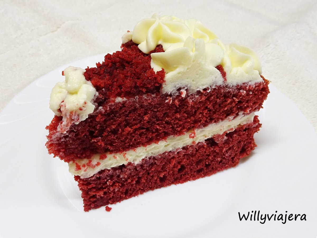 En otro recipiente mezclamos la butter milk y el colorante rojo. Reservamos. - Ahora iremos añadiendo en el bol de los huevos parte de la mezcla de harina y parte de la de leche, alternativamente hasta terminarlas. Por último mezclamos el vinagre con el bicarbonato y lo añadimos a la masa mezclando inmediatamente.