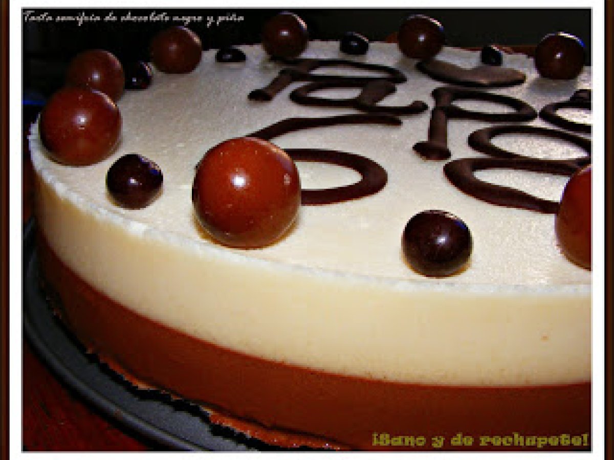 Tarta semifría de chocolate negro y piña AnteriorSiguiente PostreFácil45 min Enviar esta receta a un amigo Imprimir esta página Preguntar al autor Publicar la foto de esta receta Ingredientes 2 225 g de chocolate negro 2 sobres de polvos de cuajada 375 ml de nata 375 ml de leche desnatada 25 g de azúcar 300 g de piña de lata en su jugo 2 sobres de polvos de cuajada 375 ml de nata 375 ml de leche desnatada 25 g de azúcar