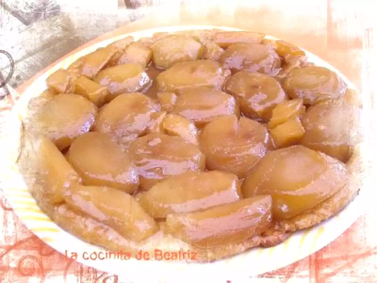 Tarta tatin de manzana AnteriorSiguiente PostreFácil50 min2171 Kcal Enviar esta receta a un amigo Imprimir esta página Preguntar al autor Publicar la foto de esta receta Ingredientes 2 140 g de harina Pizca de sal 115 g de mantequilla 1 huevo 1 cucharadita de vinagre de vino blanco 225 g de mantequilla ablandada 225 g de azúcar 4-5 manzanas ácidas Costo estimado: 4.92Euros€ (2.46€/porción)