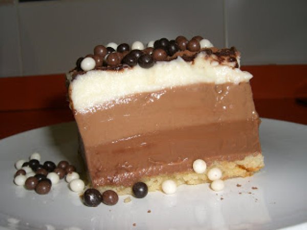 Tarta tres chocolates de la vecina de la abuela de cris.... PostreMedio37 min Enviar esta receta a un amigo Imprimir esta página Preguntar al autor Publicar la foto de esta receta Ingredientes 8 150 de chocolate negro 150 de chocolate con leche 150 de chocolate blanco 150 de azucar 750 de leche 750 de nata 3 sobres de cuajada Sobaos de mercadona