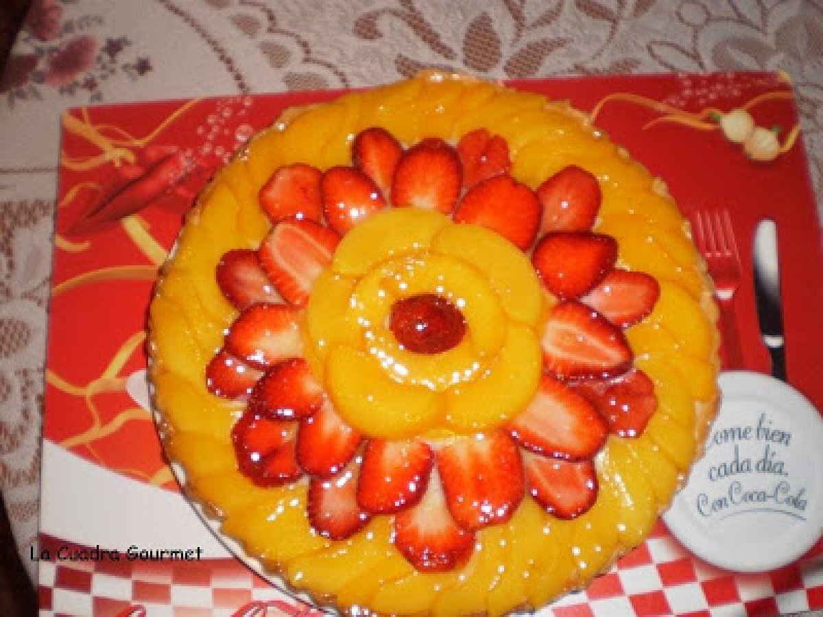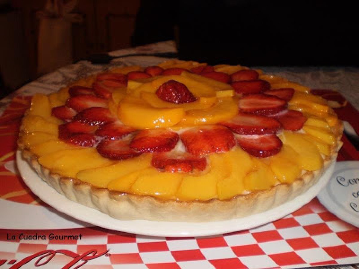 Tartaleta de melocotones y fresas AnteriorSiguiente PostreMedio1 h 5 m Enviar esta receta a un amigo Imprimir esta página Preguntar al autor Publicar la foto de esta receta Ingredientes 8 Para la base: Masa sableé. 250 grs. de harina de trigo. 125 grs. de azúcar glass. 125 grs. de mantequilla. 1 huevo. 1 pizca de sal. Aromas Para el Relleno: Crema pastelera. 30 grs. de fécula de maíz 80 grs. de azúcar. 350 ml. de leche. 35 grs. de mantequilla. 1 huevo Vainilla al gusto. Lata de melocotones en almíbar. Fresas o fresones.
