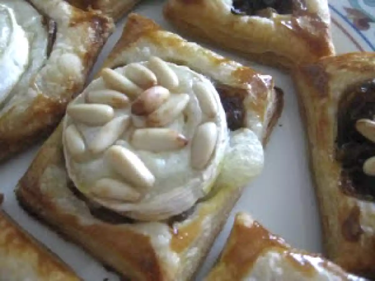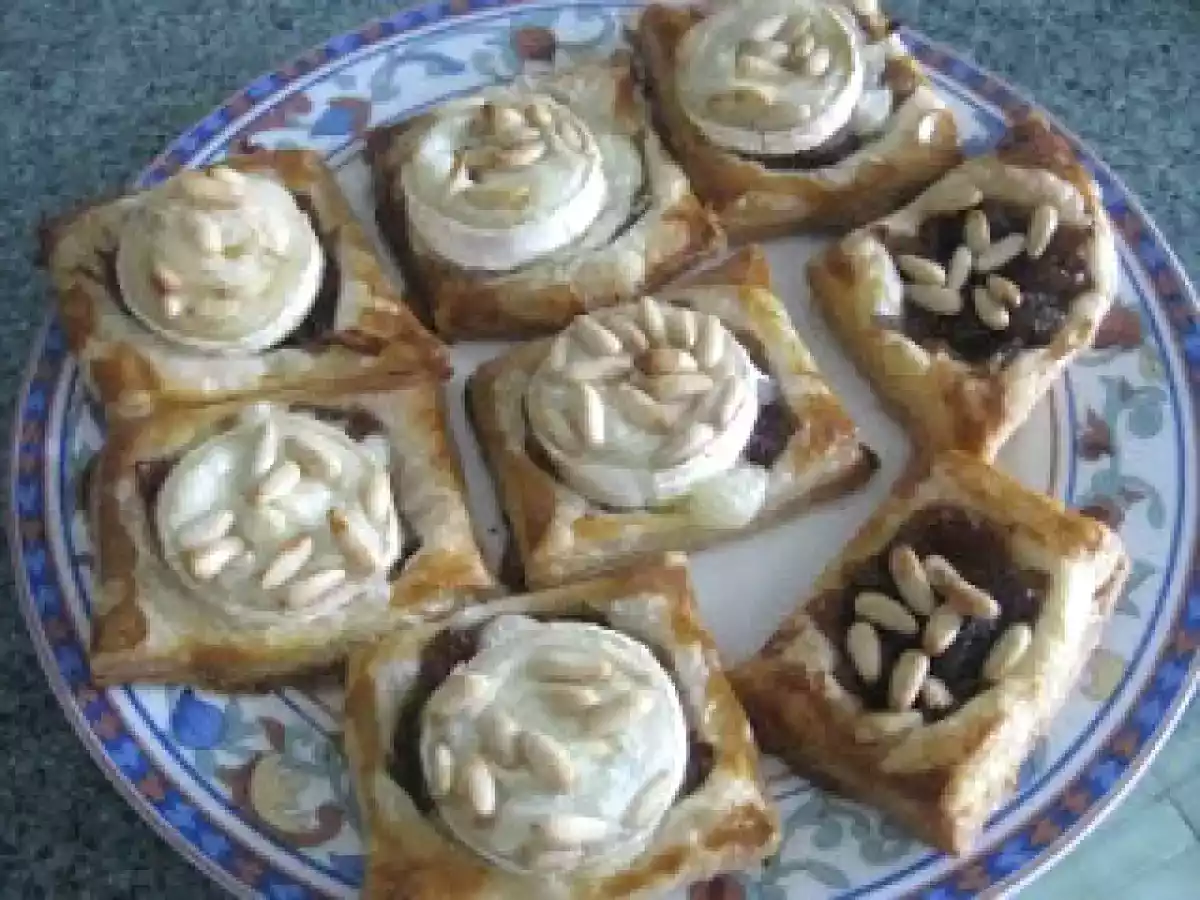 Tartaletas con cebolla caramelizada y queso de cabra.