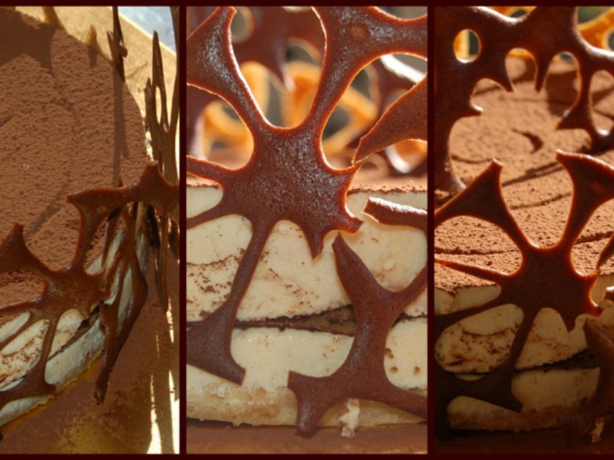 Tiramisú con crujientes de café AnteriorSiguiente PostreMedio25 min Enviar esta receta a un amigo Imprimir esta página Preguntar al autor Publicar la foto de esta receta He aquí unos ingresos sabrosos perfeccionan para el postre. Ingredientes 4 Crema de mascarpone : 200 cc de nata líquida 60 g de azúcar 3 yemas de huevo 1 tarrina de mascarpone 2 hojas de gelatina Plancha de biscuit : 2 yemas de huevo 15 g de azúcar 1 cucharada de agua caliente 2 claras 20 g de azúcar y un pellizco de sal 35 g de harina 20 g de maicena un pellizco de impulsor Crujientes de café : 50 g de azúcar lustre 1 cucharada de café soluble 70 g de sirope a 30º 35 g de clara de huevo 50 g de harina Otros ingredientes : 200 cc de café fuerte + amaretto al 50% cacaco en polvo