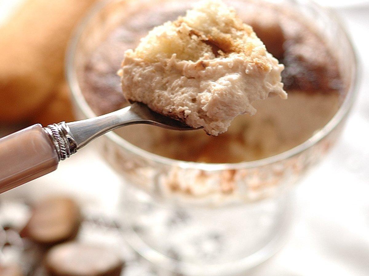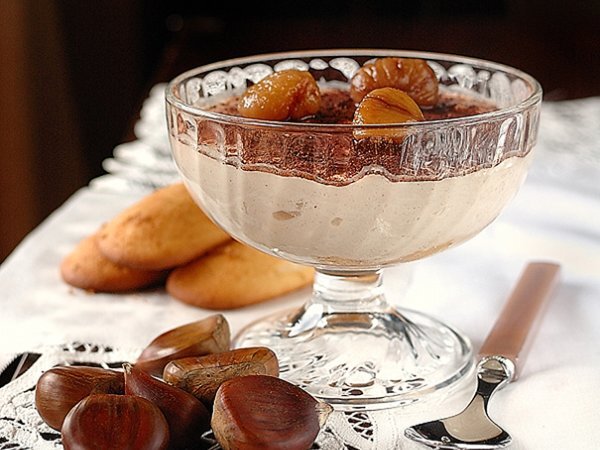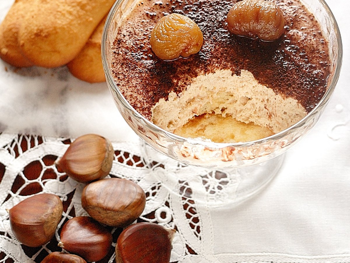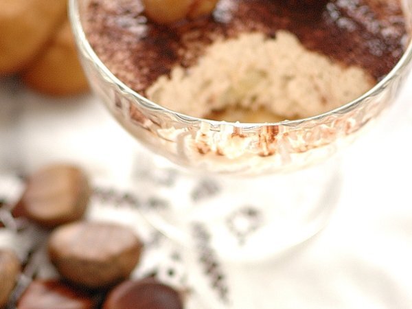 Tiramisú de castañas AnteriorSiguiente PostreFácil50 min793 Kcal Enviar esta receta a un amigo Imprimir esta página Preguntar al autor Publicar la foto de esta receta Ingredientes 4 4 huevos 150 g de puré de castañas sin endulzar 70 g de sirope de ágave 500 g de queso mascarpone 350 g de nata espesa 12-16 bizcochos de soletilla 60 cl de café fuerte 30 cl de sirope de arce o miel de caña Cacao puro en polvo para espolvorear