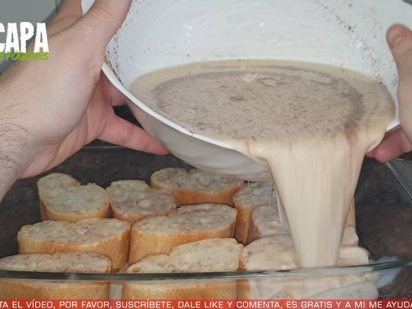 Ahora que ya tenemos todas las rebanadas de pan cortadas las vamos a empapar de la mezcla que habíamos hecho anteriormente. Dejaremos que vayan absorbiendo la mezcla unos minutos, dándoles la vuelta de vez en cuando. A la hora de darles la vuelta hacerlo con cuidado porque estarán muy frágiles y se nos podrían romper.