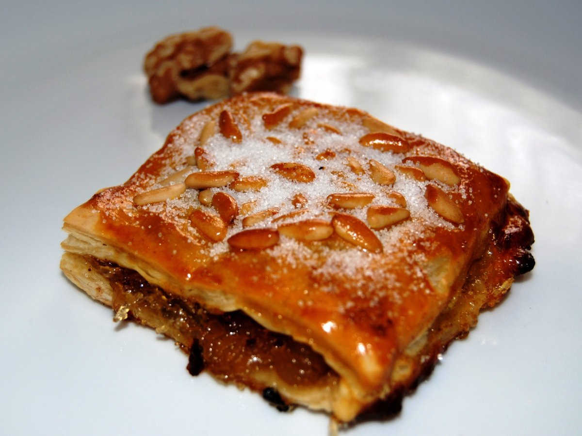 Tortas alhambra PostreMedio35 min Enviar esta receta a un amigo Imprimir esta página Preguntar al autor Publicar la foto de esta receta Ingredientes 1 Un par de láminas de hojaldre 450 gramos de cabello de Ángel Nueces Picadas Piñones Azucar para espolvorear Canela Huevo batido para pintar