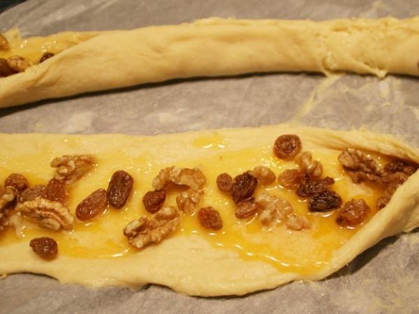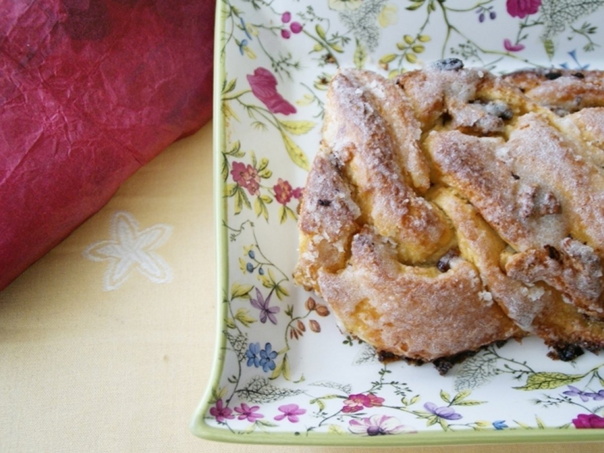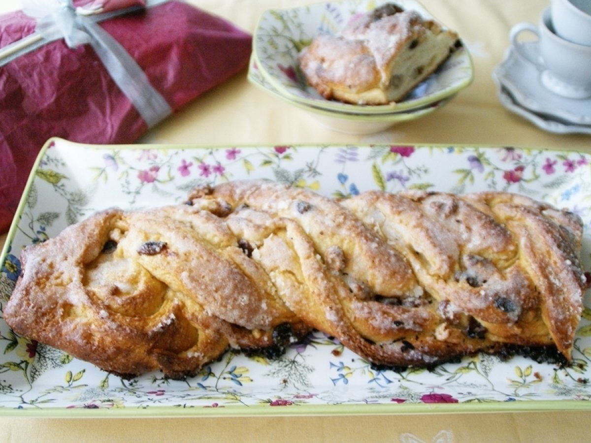 Un dulce imitado hasta la saciedad por el mundo blogeril ya que la receta original la tienen bien guardada : ( Una trenza hecha con una masa hojaldrada, rellena de pasas, y nueces,