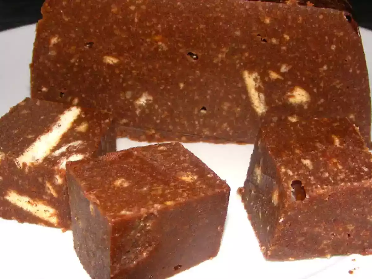 Turrón de chocolate con galletas maría PostreFácil35 min2250 Kcal Enviar esta receta a un amigo Imprimir esta página Preguntar al autor Publicar la foto de esta receta Ingredientes 2 250 g de cobertura de chocolate semiamargo 250 g de mantequilla derretida 250 g de galletas maria 2 huevos 1 cucharada de azucar moreno Costo estimado: 6.09Euros€ (3.05€/porción)