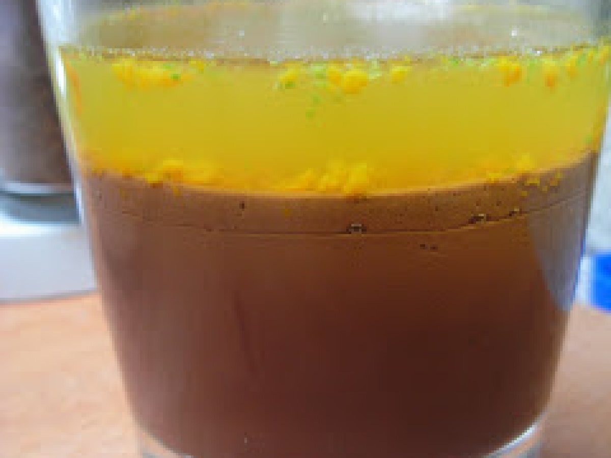 Vasitos de chocolate con gelatina de mandarina AnteriorSiguiente PostreFácil45 min Enviar esta receta a un amigo Imprimir esta página Preguntar al autor Publicar la foto de esta receta Ingredientes 1 100 ml de nata para montar 100 g de chocolate nestle postres 1/2 sobre de cuajada 100 ml de leche 1 hoja de gelatina 100 ml de agua 25 g de azúcar ralladura de mandarina colorante