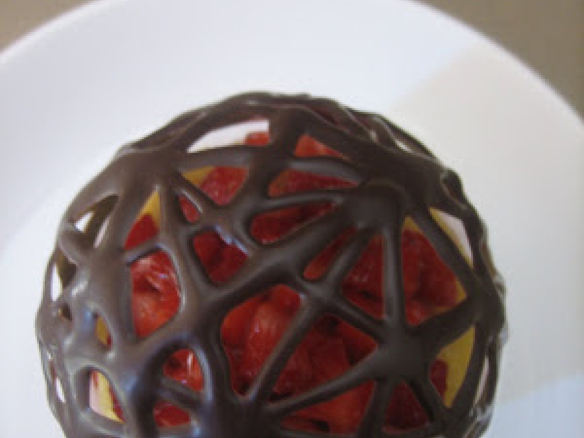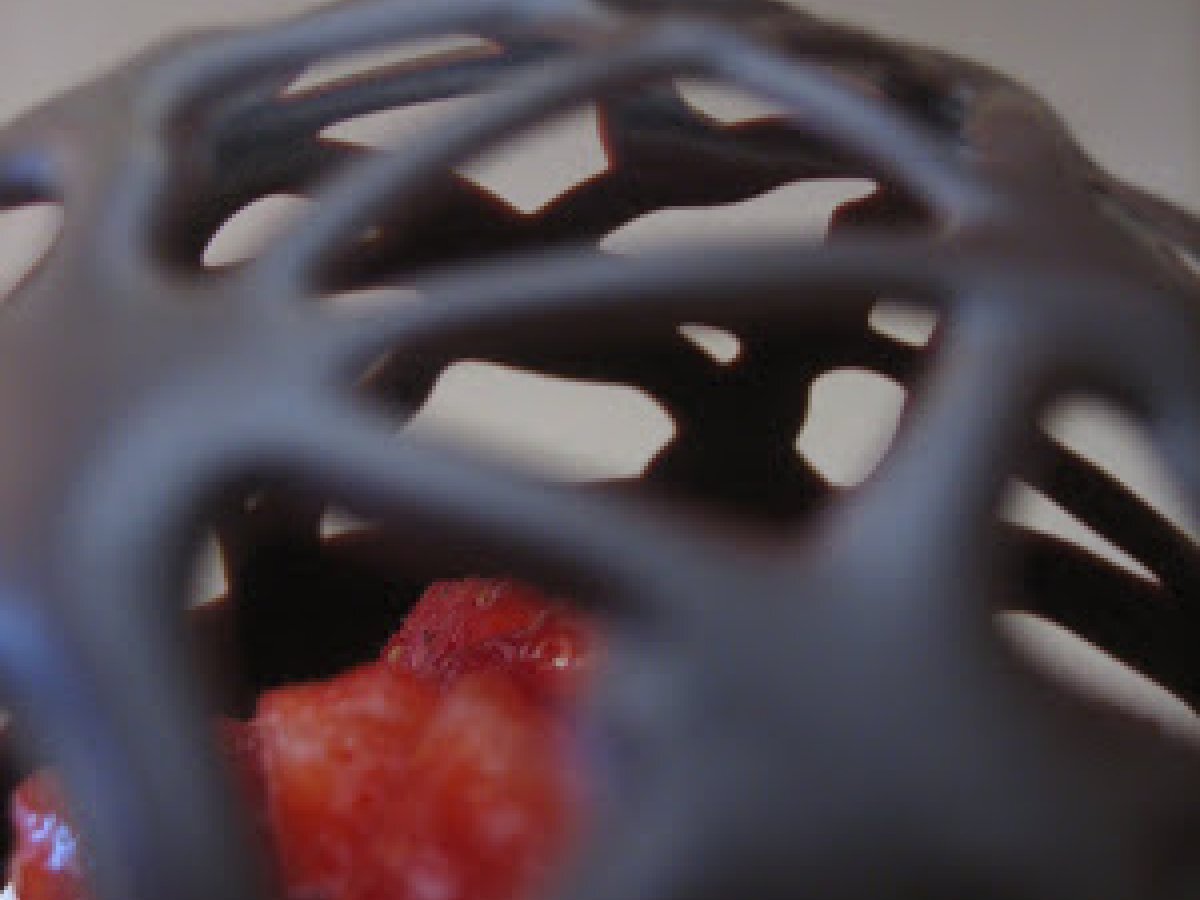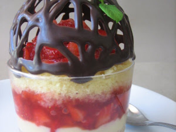 Un postre delicado y sofisticado gracias a su bonita presentación en vasitos y cúpula de chocolate.