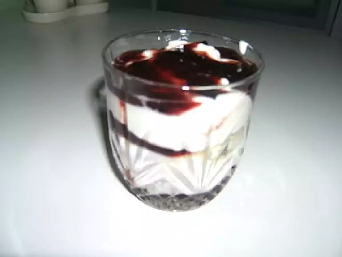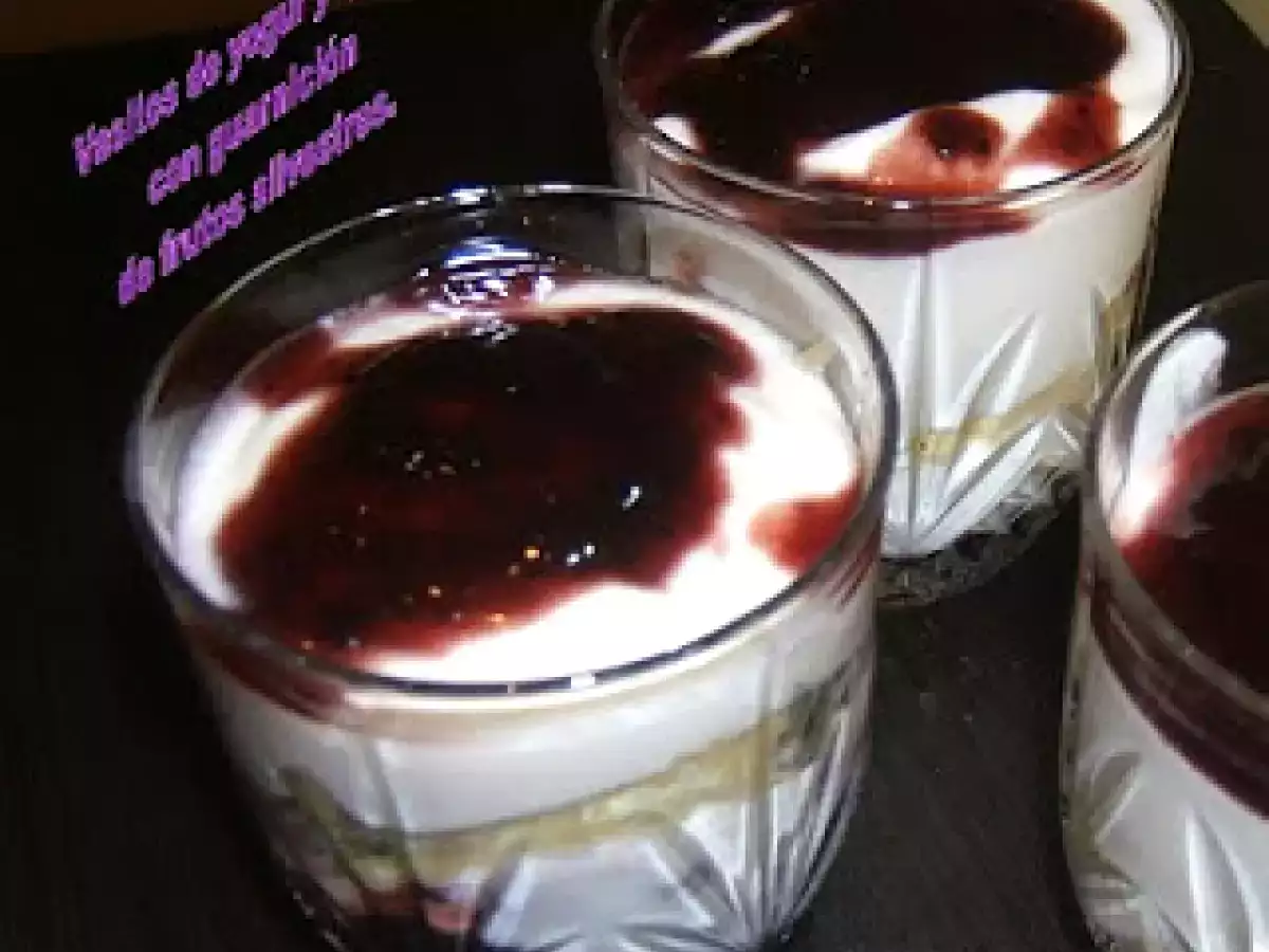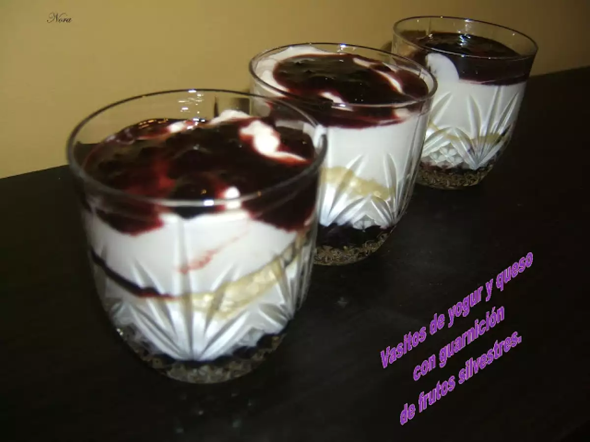Vasitos y tarta de yogur y queso vota ahora AnteriorSiguiente PostreFácil45 min550 Kcal Enviar esta receta a un amigo Imprimir esta página Preguntar al autor Publicar la foto de esta receta Ingredientes 3 2 huevos 50 g de azúcar 50 g de harina 4 hojas de gelatina 250 g de yogur griego sin azúcar 5 cucharadas de azúcar 250 g de queso crema 250 g de nata almíbar de licor de bellota guarnición de frutos silvestre de cántabra