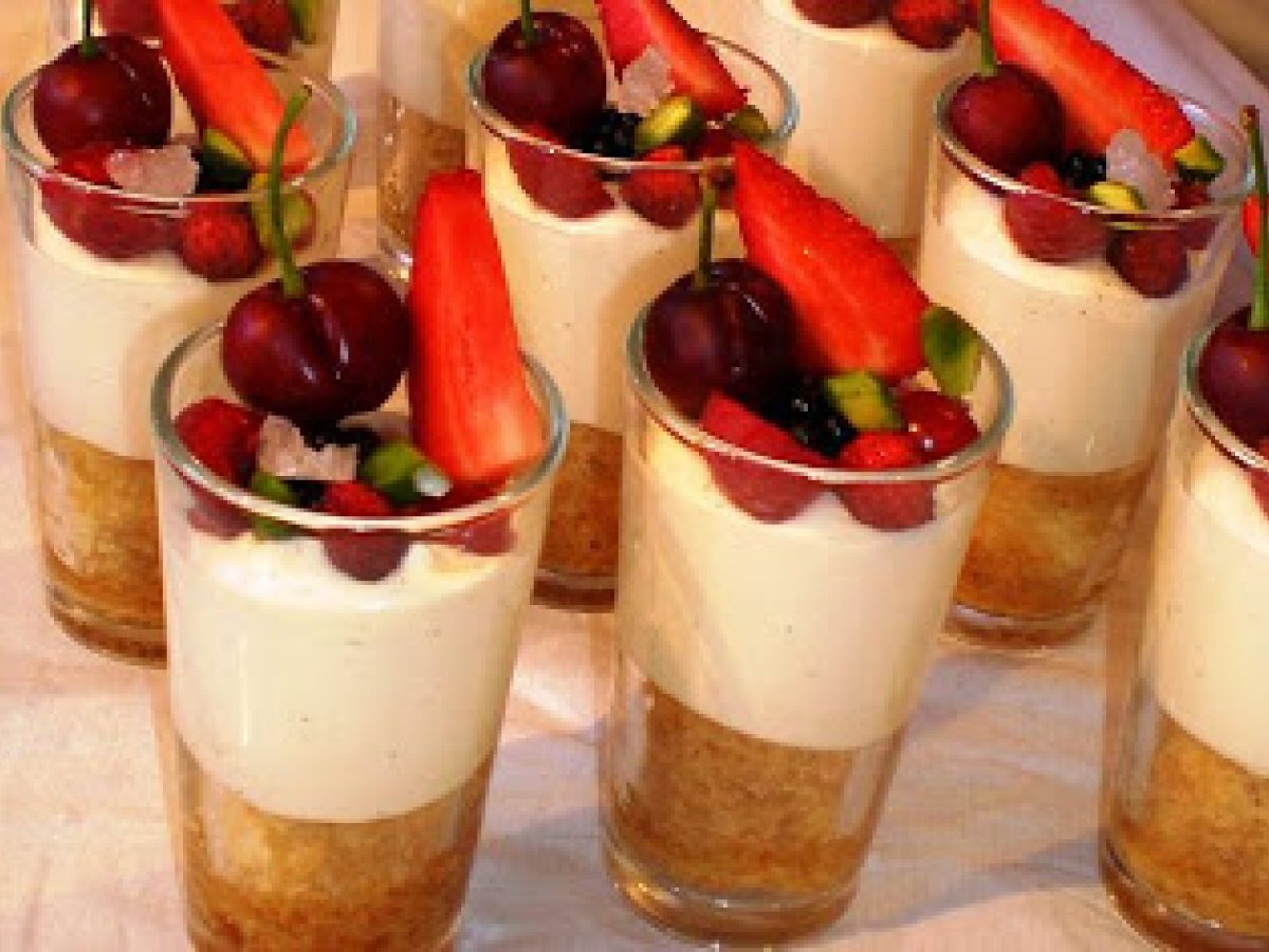 Vaso degustación de crema de mascarpone con vinagre y frutos rojos