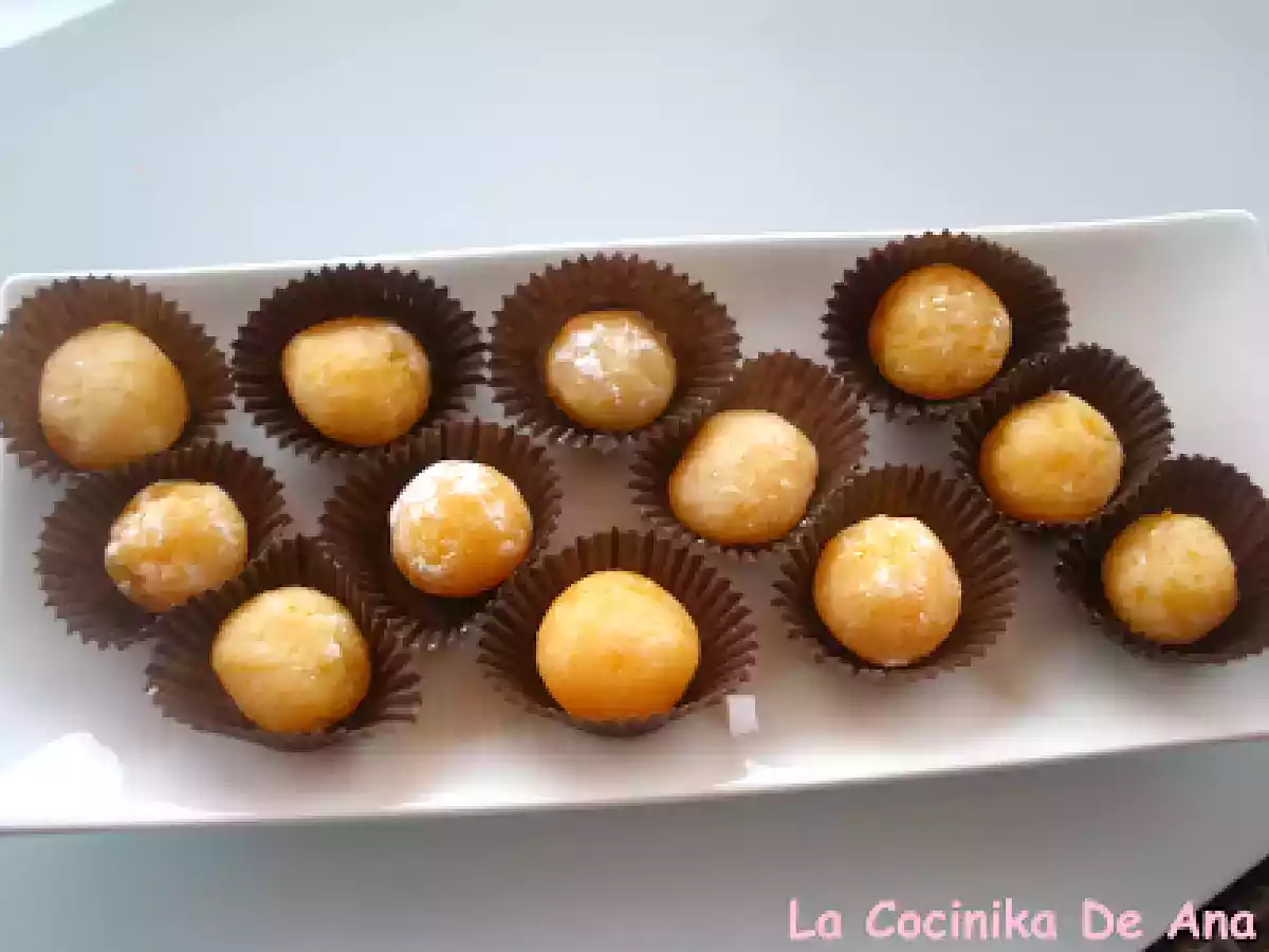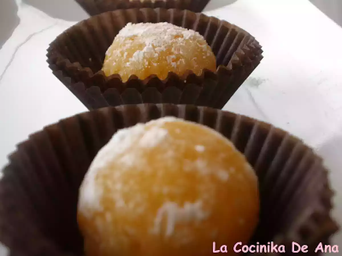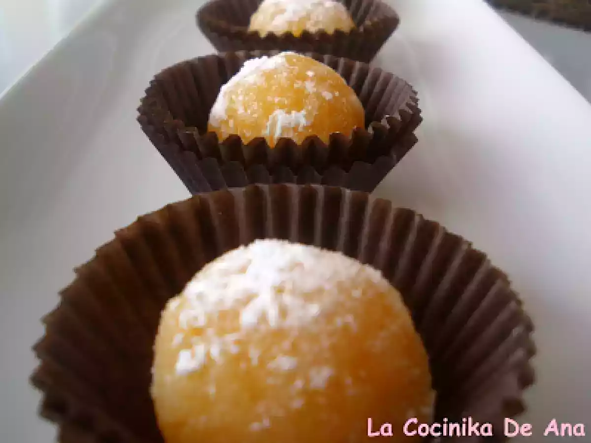 Una vez formadas las yemas (en forma de bolitas), se suelen servir en cápsulas de papel rociadas con azúcar glass