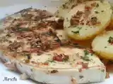 Ingredientes: 2 filetes de marrajo. 2 dientes de ajo picado. perejil picado. zumo de 1 limón. aceite de oliva. sal. 4 patatas medianas con piel. 1 cebolla.
