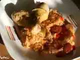Ingredientes: 400 g de arroz 1 Butifarra 2 Muslos de pollo deshuesados y sin piel 1 Cebolla 4 Dientes de ajos 1 Zanahoria Pimentón dulce Hebras de azafrán o...