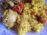 Ingredientes: 1 pechuga de pollo y troceada en dados 1 zanahoria en rodajas 2 dientes de ajo picado 50 ml. de tomate triturado 1 pimiento picado fino ½ medida de...