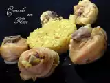 Ingredientes: 3 vasos medidores de arroz 9 vasos medidores de agua (si lo haces sin caldo que salga el arroz seco como en la foto será 3 - vasos de agua mas...