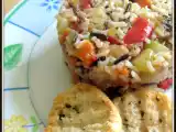 Ingredientes: 1 pimiento rojo 2 pimientos verdes grandes , si es de la misma clase que el rojo con uno de cada bastará. 1 cebolla grande 400 g de tomate frito o...