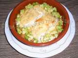 Ingredientes: 250 g de brócoli, en este caso congelado. unos pedazos de bacalao desalado, congelado. queso para gratinar una cucharada de postre de mantequilla...