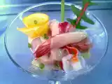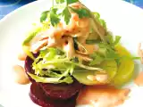 Ingredientes: Para el coctel: Un bouquet de ensalada 100 g de gambas 100 g de langostinos 1 carabinero 3 palitos de cangrejo 1 aguacate Para la salsa rosa: 4...